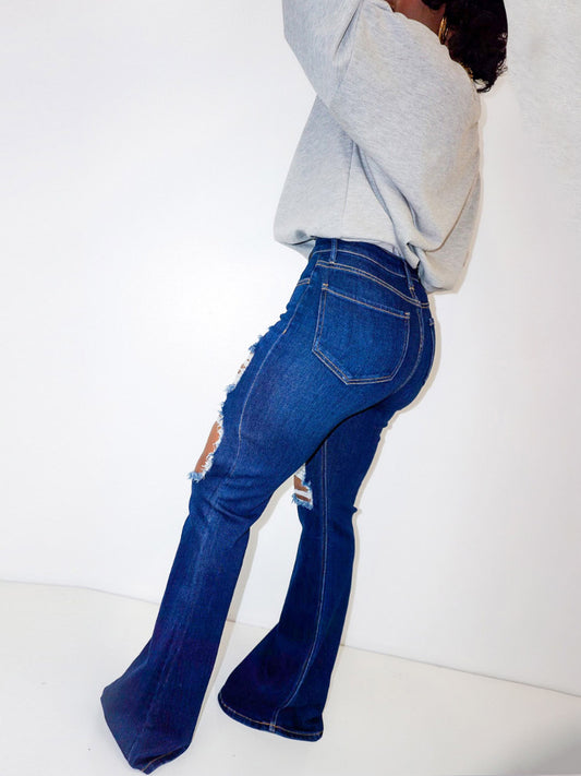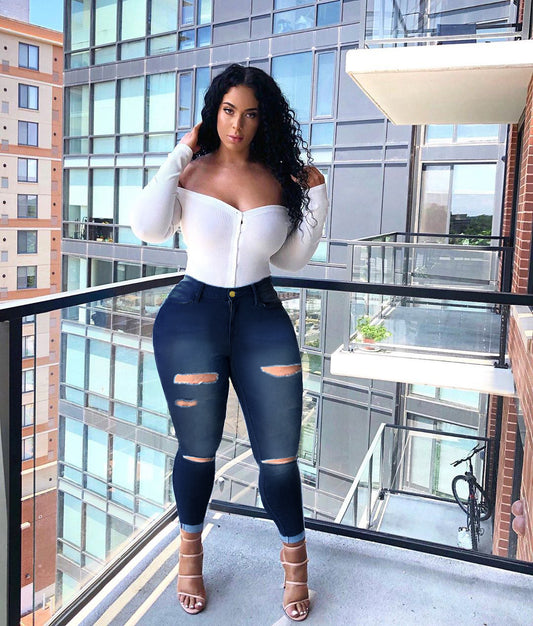 European And American Lady High Stretch Jeans Wide Leg Trousers Ripped
