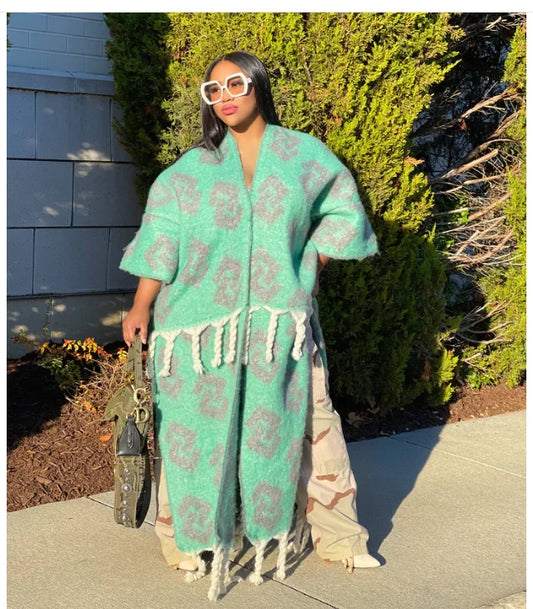 Winter Fashion African Women Fuzzy Long Cardigans plus Size American Blogger Loose Warm Cashmere Duster Coat for Lady